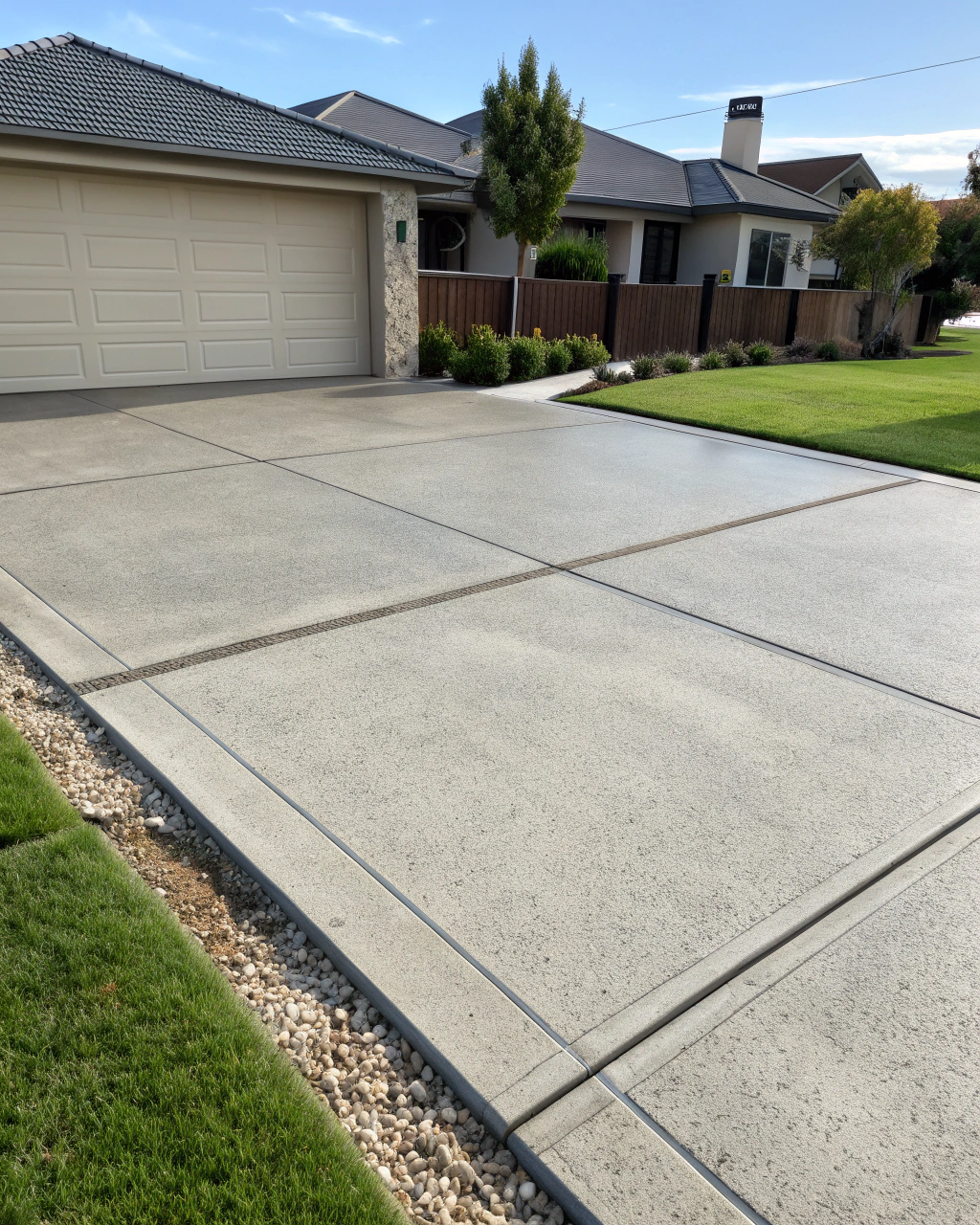Yes, we include a 1:100 fall toward the garage door. This prevents water pooling inside after washing vehicles or during Newcastle’s heavy rain. Without proper drainage, water sits on the floor, creating slip hazards and moisture problems.
