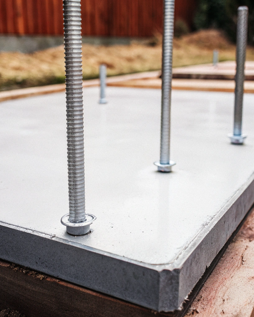 Chemical anchors work better when you’re not certain of exact positions until the shed arrives onsite. Cast-in bolts give stronger holding power for larger sheds or high-wind locations but need precise positioning during the pour. We’ll recommend the fixing method that suits your shed type and site exposure.
