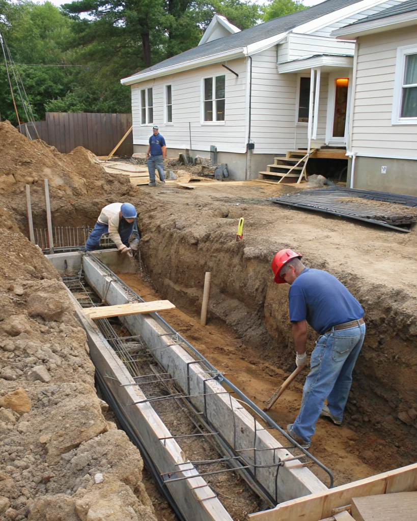 Extensions and additions need strip footings that match your existing foundation system and handle the new loads you’re adding. We’re excavating and pouring footings that tie into your current house structure while meeting modern engineering standards for the additional building area.
